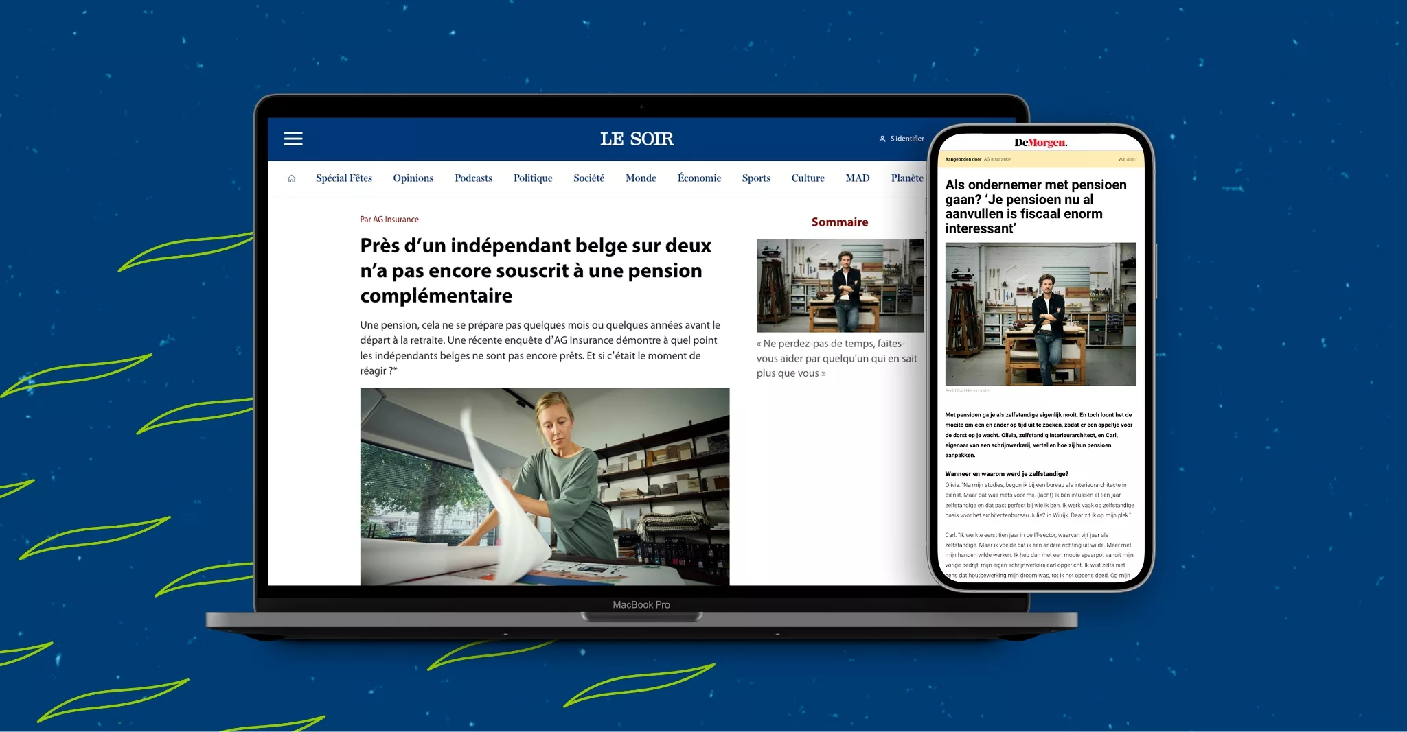 So we decided to give a virtual wake-up call : “Dear self-employed worker, it is time to TAKE ACTION for your pension”, while visually integrating the brand’s name in the message. Our communication was reinforced with compelling statistics obtained from a recent survey and supported by native content featuring four real-life self-employed workers, each with a unique personality and voice.