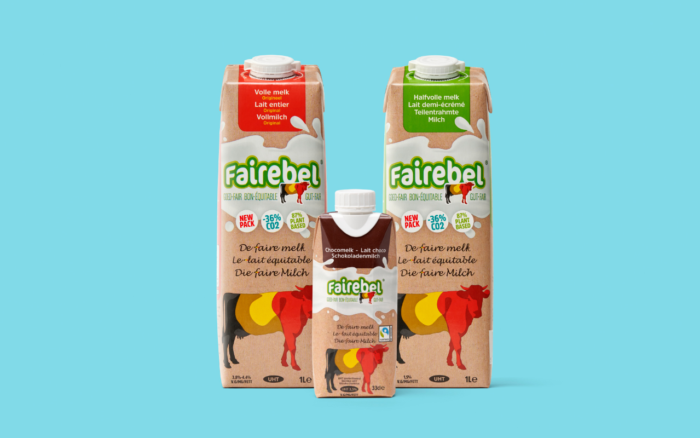 Fairebel has pursued a healthy objective since its creation: offering all Belgians high-quality products at a fair price for the consumer and the producer. In keeping with this commitment, the cooperative is also committed to more responsible and environmentally friendly consumption. This is the spirit driving its new eco-responsible packaging. The new packaging is made of 87% plant raw materials. It is 100% recyclable, saves 180,000 kg of fossil-based plastics, and leads to a spectacular 36% reduction in CO2 emissions.