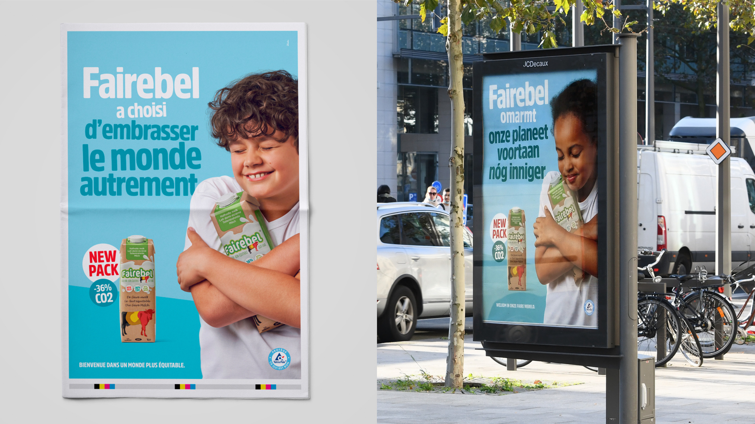 More than just an industrial affair, the new Fairebel packaging demonstrates a solid and consistent brand philosophy. It is in this spirit that Shake has endorsed the new brand packaging and finalised a 360-degree campaign with a strong claim: “Fairebel has chosen to embrace the world differently”. This is a way of highlighting the new packaging while underlining the cooperative’s civic engagement. Much more than just product information, in this light the campaign has become an appeal to Belgian consumers looking for another way to consume.