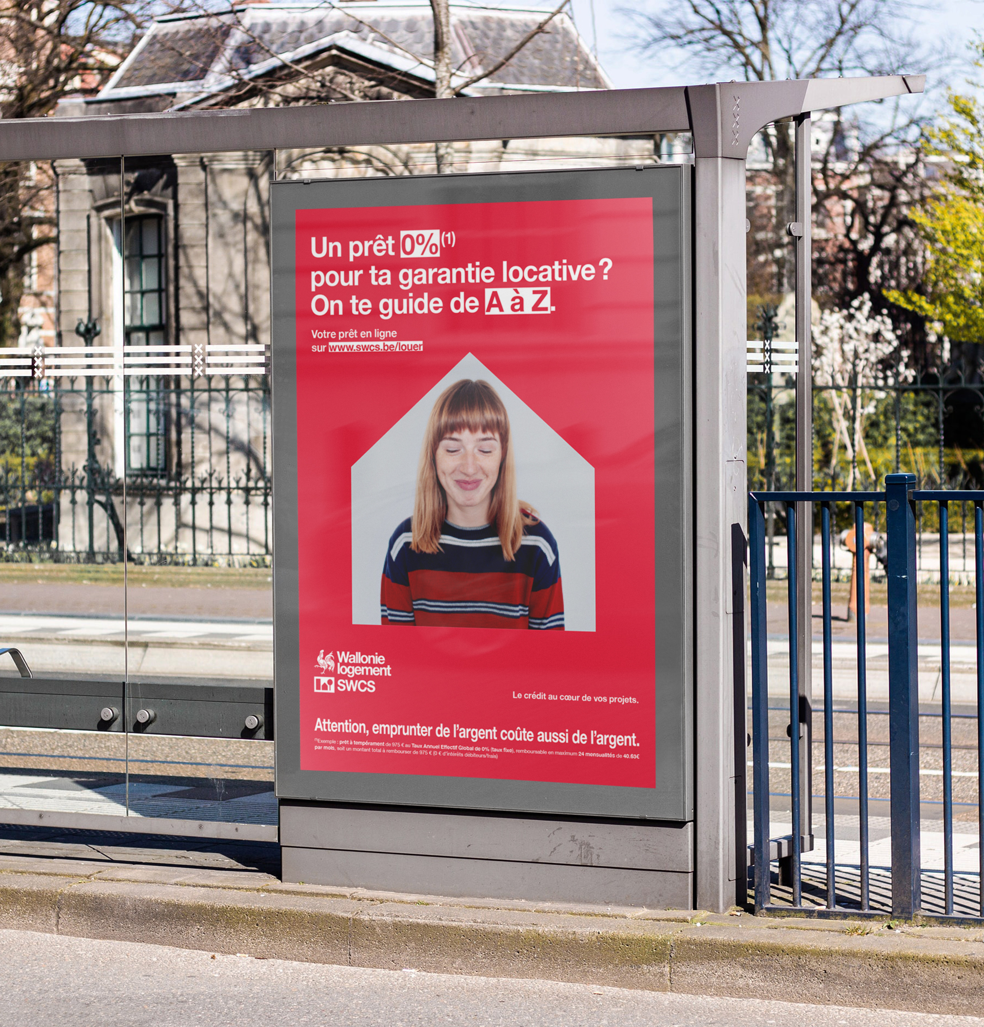 Banks compete in ingenuity to grow their credit portfolio. But even for small sums such as a rental deposit, some would-be borrowers simply don’t meet the requirements. That’s where SWCS comes in with an unbeatable offer: a loan for their rental guarantee at 0% interest. A very useful product, valid for classic houses/flats and student housing, but largely unknown to young (and not so young) future tenants. We had to find the right angle to communicate the existence of this alternative.