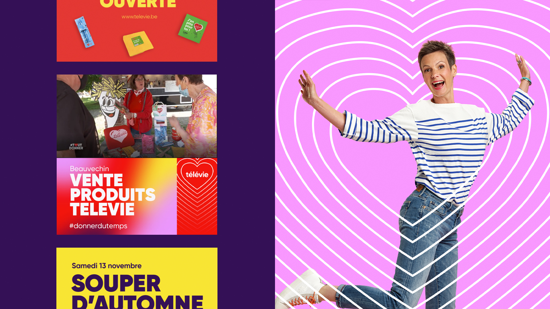 We first tackled the graphic identity, considering the undeniable assets of Télévie: the central symbolism of the heart and the color red. Fundamentals that we chose to perpetuate but also to re-energize. More than a logo, we created a whole new brand system with animations in the form of heartbeats, luminous support colors, a very large iconography, videos in all formats and specific applications for social networks.