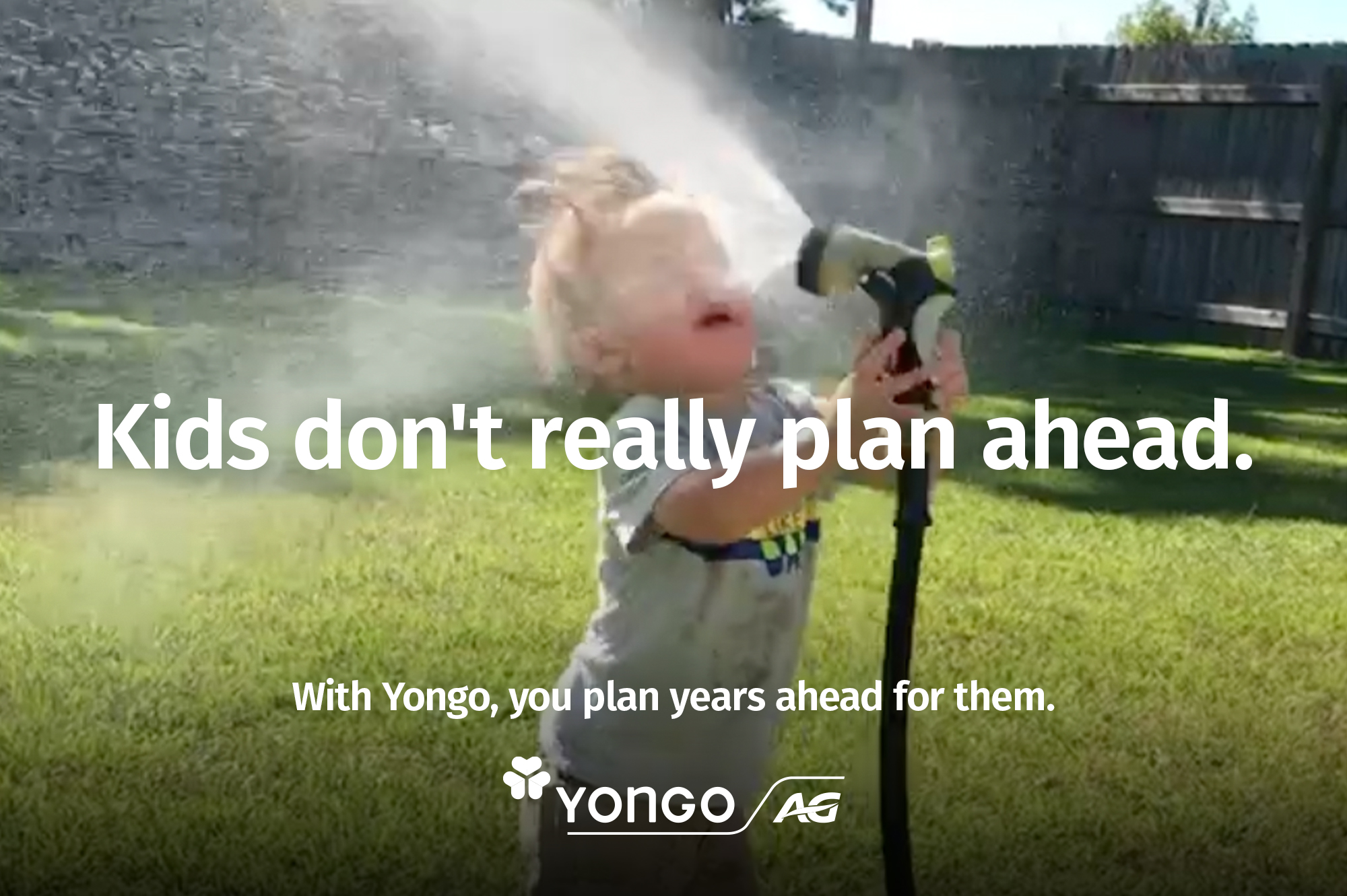 The first year, our focus was to raise awareness on the product without losing the link to the Yongo brand. We created short, funny videos showing kids doing all kind of weird stuff with the message saying “Kids don’t really plan ahead. With Yongo, you plan years ahead for them.”.